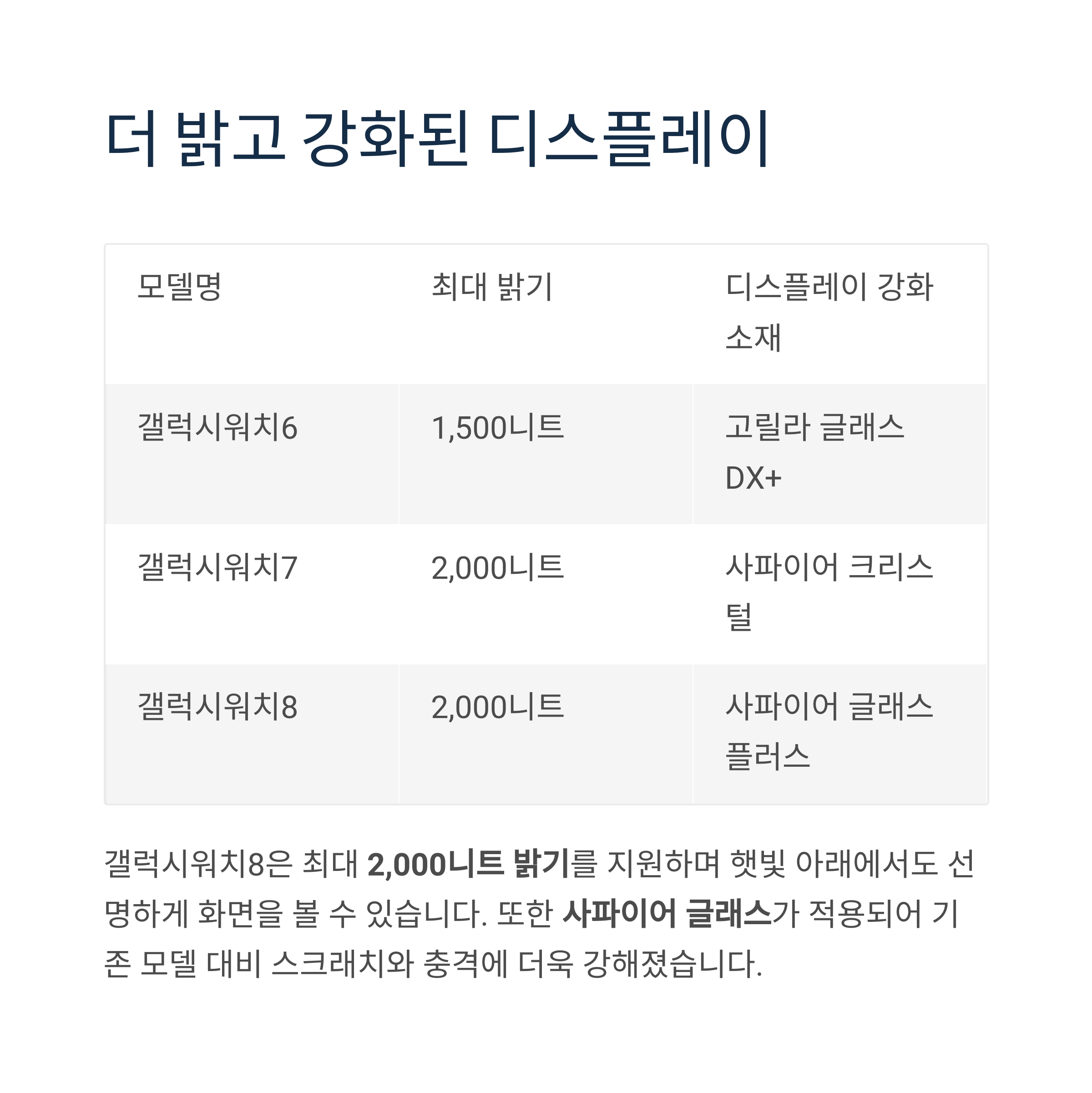 | 갤럭시워치7 | 2,000니트 | 사파이어 크리스털 |