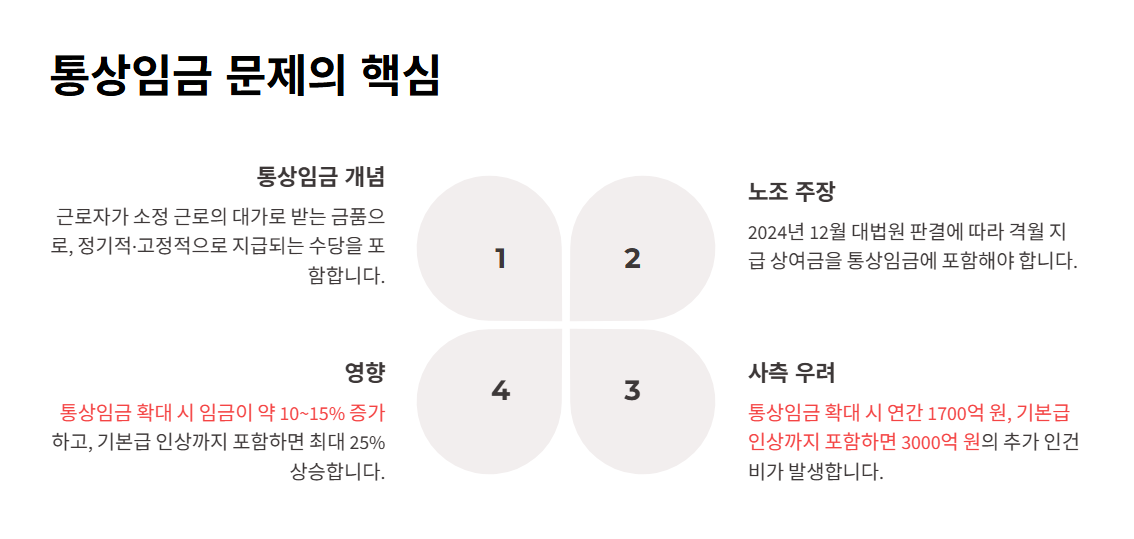 임금 인상과 통상임금 협상 결렬의 주요원인